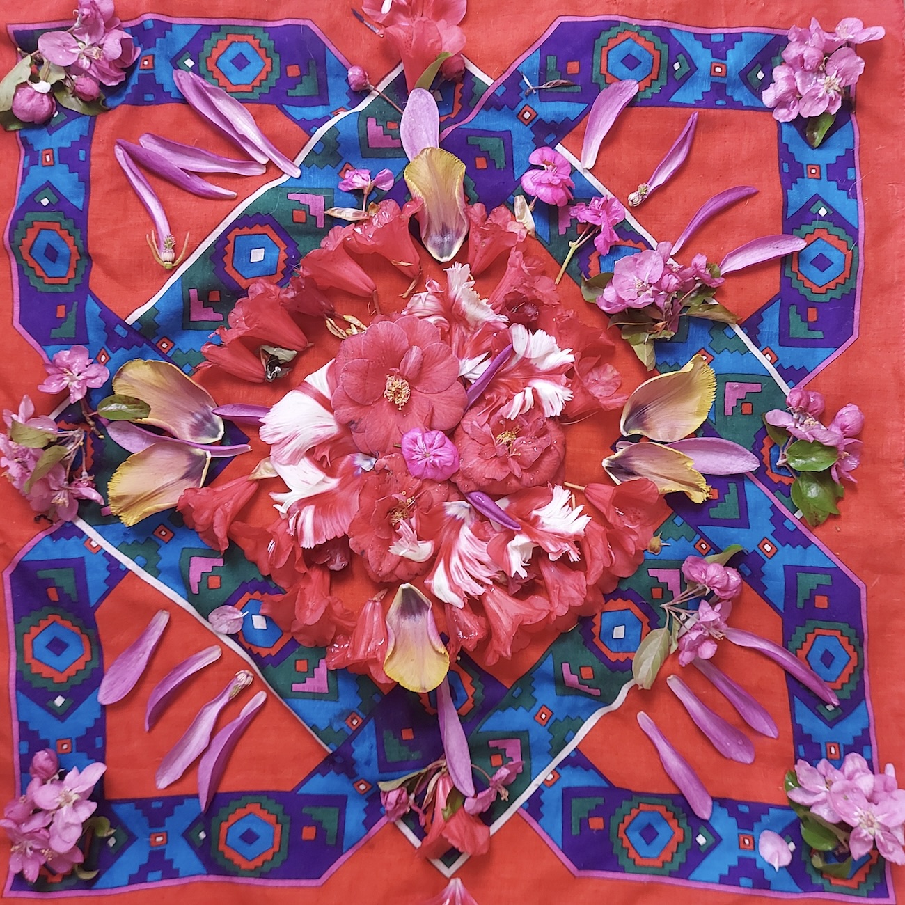 As the project comes to an end, we gather to make offerings for future flourishings, honouring the gifts already at our feet and holding the space through a shared flower ceremony. A collective mandala and flower limpia mark a moment of gratitude, renewal, and gentle closing, carrying the work forward both personally and collectively.